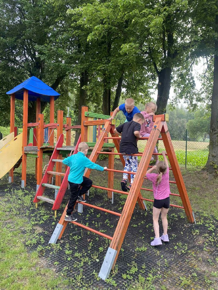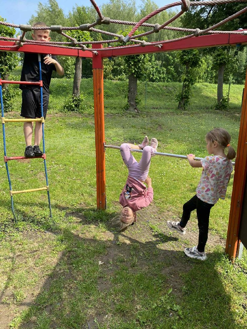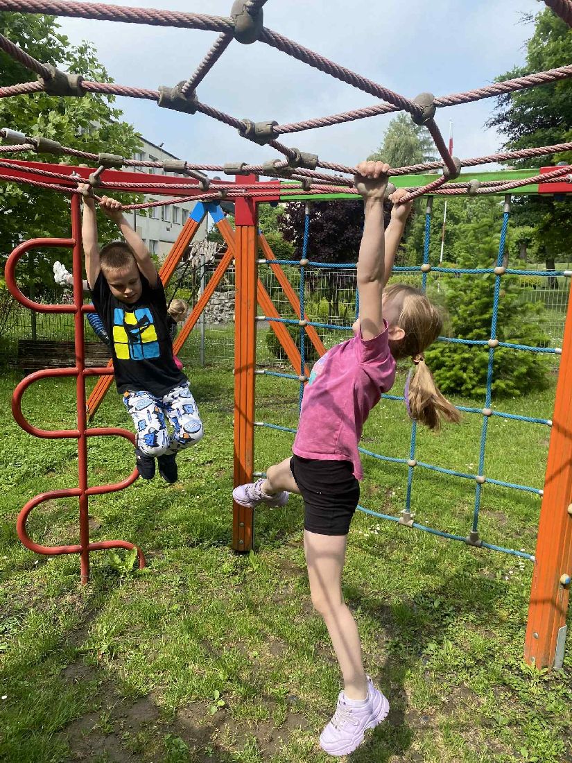 Aktywność fizyczna poprawia nastrój. Zwiększa zdolność uczenia się . Uprawianie sportu poprawia samoocenę. Wiedzą to Pierwszaki, które w ramach innowacji pedagogicznej skorzystały z przedszkolnego placu zabaw. Bardzo dziękujemy Pani Dyrektor Przedszkola w Strzyżowie za udostępnienie placu.