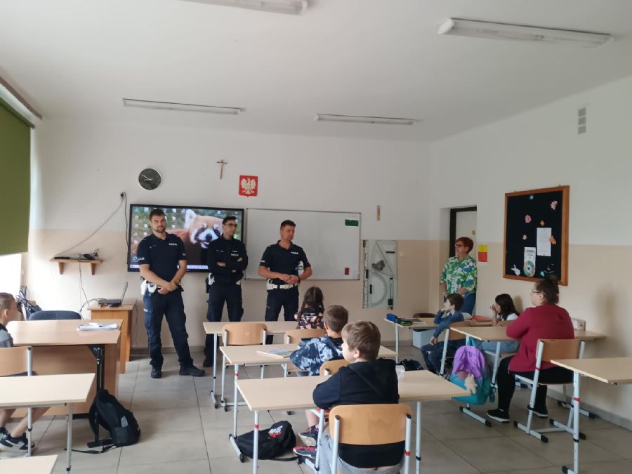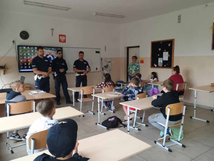 Nad bezpiecznym i sprawnym przeprowadzeniem egzaminu czuwali panowie policjanci sierżant Artur Zankiewicz, Michał Gruszka i Dominik Wójcik.