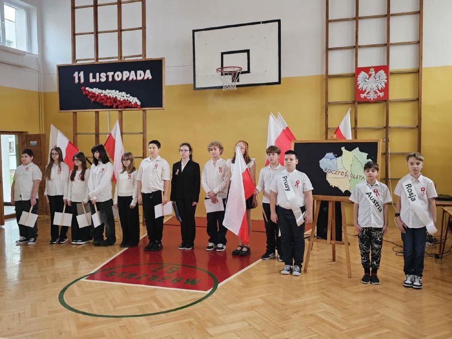 7 listopada, z okazji Narodowego Święta Niepodległości podczas szkolnego apelu klasy I i VI zaprezentowały piękną lekcję patriotyzmu. Uczniowie klasy VI zapoznali nas z wydarzeniami, które doprowadiły najpierw do utraty niepodległości na 123 lata, a potem do jej odzyskania. Wysłuchaliśmy także wzruszających piosenek patriotycznych w wykonaniu uczniów obu klas, które przypomniały nam, jak ważna jest wolność i miłość do Ojczyzny. O 11:11 cała społeczność szkolna odśpiewała hymn państwowy.