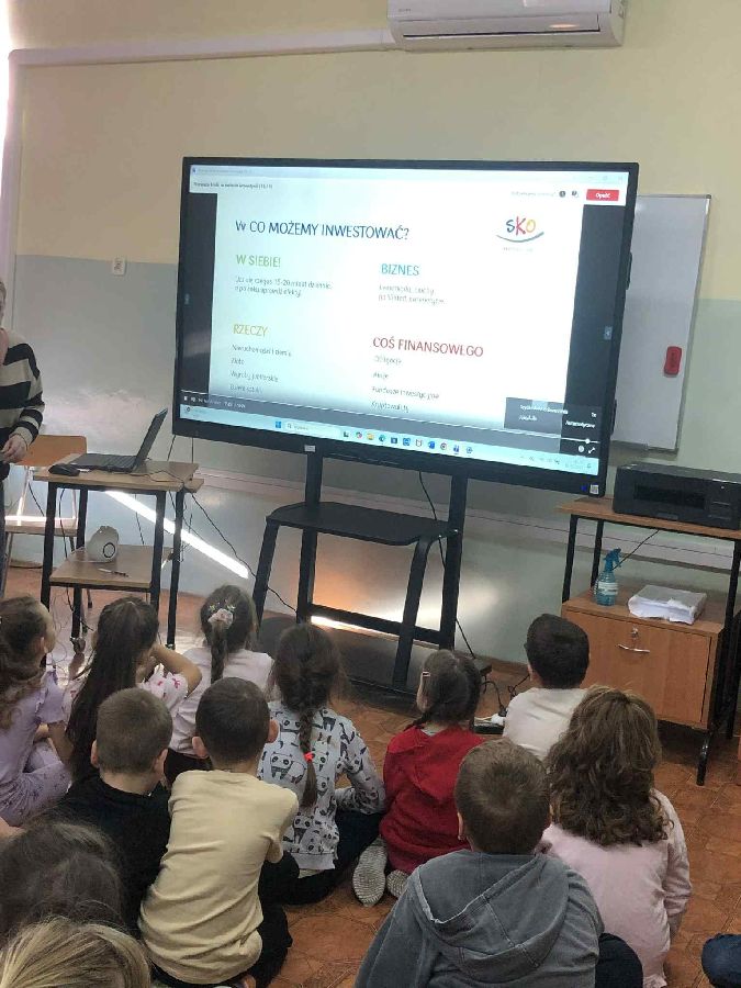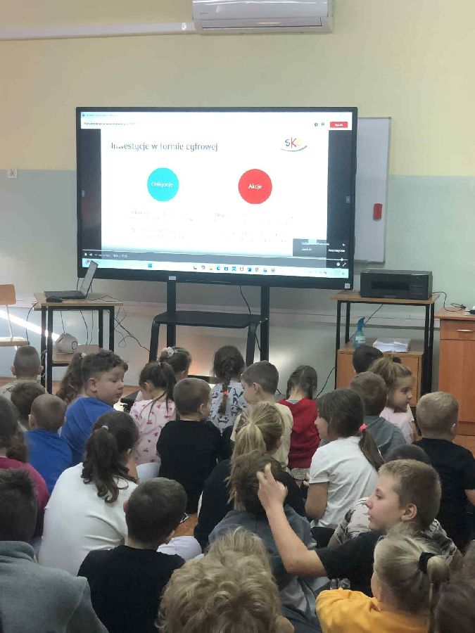 18.11.2025 r. uczniowie naszej szkoły wzięli udział w lekcji online realizowanej w ramach programu Szkolnych Kas Oszczędności PKO Banku Polskiego. Podczas zajęć doradca inwestycyjny banku w przystępny i angażujący sposób wprowadził uczniów do świata finansów. Przedstawił różnice między oszczędzaniem a inwestowaniem, podał przykłady inwestycji oraz korzyści i ryzyka związane z inwestowaniem.