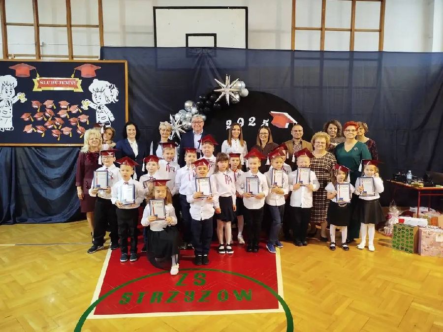 21 listopada 2025 r. uczniowie klasy pierwszej pod kierunkiem wychowawczyni Anny Nowosad zostali pasowani na uczniów Szkoły Podstawowej im. Mari Konopnickiej w Strzyżowie. Uczniowie zaprezentowali część artystyczną, w której znalazły się wiersze piosenki i tańce. Naszą uroczystość uświetnili swoją obecnością wspaniali goście: pani Sekretarz Gminy Horodło Renata Czekaj, Przewodnicząca Rady Gminy pani Anna Dąbrowska, Dyrektor Banku PKO BP W Hrubieszowie pan Norbert Rybiński oraz pani Irena Kamińska – opiekunka SKO Banku PKO BP, Dyrektor Gminnego Ośrodka Kultury w Horodle pan Grzegorz Jeżyna, przedstawicielka Gminnej Biblioteki Publicznej w Horodle pani Magdalena Wrona, pani Dyrektor Przedszkola w Strzyżowie Iwona Dudka z paniami Wychowawczyniami i Dziećmi z Grupy Sześciolatków , Przewodnicząca Rady Rodziców pani Katarzyna Feresz oraz pani Barbara Stadnicka i pan Kamil Augustynek – radni Gminy Horodło. Bardzo wszystkim dziękujemy za przybycie i wspaniałe prezenty. Serdeczne podziękowania również dla pana Mateusza Jaronia – radnego z naszej miejscowości, który nie mógł uczestniczyć w naszej uroczystości, ale przekazał życzenia i prezent dla całej klasy. Dziękujemy wychowawczyniom klasy drugiej pani Barbarze Klamer i klasy III pani Monice Przyczynie i ich wychowankom za życzenia skierowane do pierwszoklasistów i prezenty. Szczególne podziękowania kierujemy do Rodziców i pani Dyrektor Agnieszki Harpeniuk. Pierwszoklasiści są dumni i szczęśliwi, że stali się pełnoprawnymi uczniami Szkoły Podstawowej im. Marii Konopnickiej w Strzyżowie.