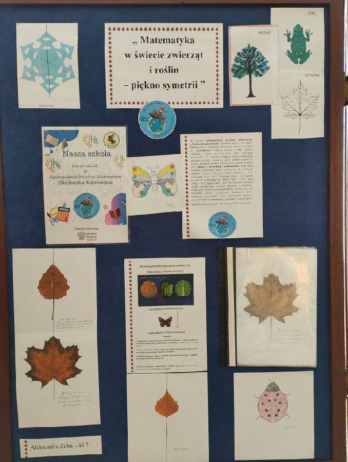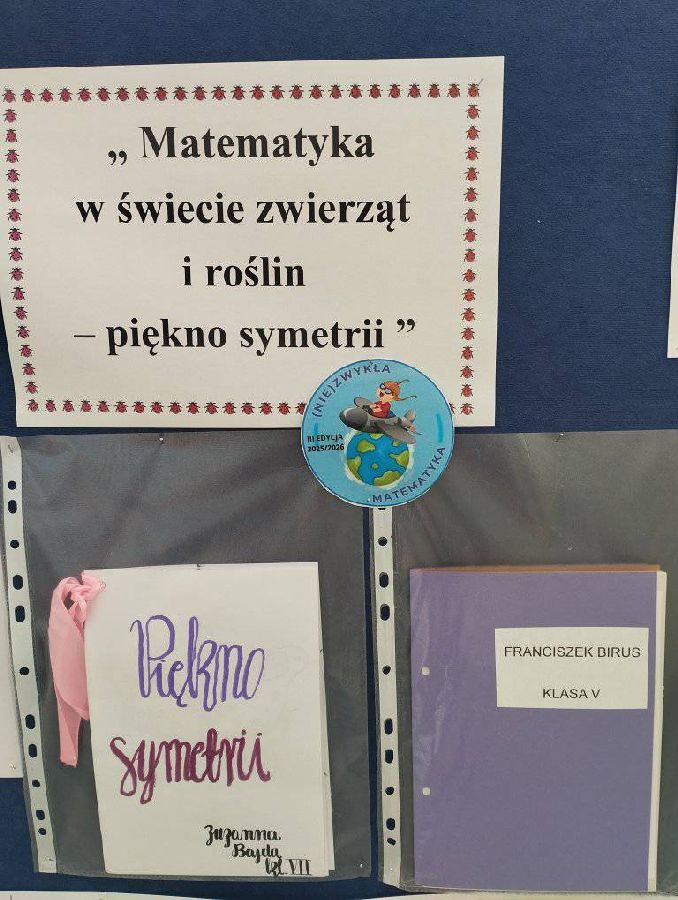 W ramach ogólnopolskiego projektu edukacyjnego „(Nie)zwykła matematyka” uczniowie klas V –VII Szkoły Podstawowej w Strzyżowie zrealizowali zadanie z modułu VII: „Matematyka w świecie zwierząt i roślin – piękno symetrii”. Celem przedsięwzięcia było rozwijanie kreatywności oraz ukazanie związków między matematyką a światem przyrody. Uczniowie badali zjawisko symetrii w liściach, kwiatach, owadach i drzewach, a efektem ich pracy były albumy i prezentacje multimedialne, które będą stanowiły wartościową pomoc dydaktyczną dla młodszych uczniów. Autorzy albumów: Bajda Zuzanna – kl.7, Aleksandra Zuba - kl.7, Franciszek Birus – kl.5; autorzy prezentacji multimedialnych: Wiktor Pałys – kl.7, Jakub Zubko – kl.7, Bajda Lena – kl.6. Na korytarzu szkolnym została przygotowana wystawa albumów i prezentacji. Dziękujemy uczniom za zaangażowanie, wysiłek oraz chęć rozwijania swoich umiejętności. Realizacja modułu dostarczyła uczestnikom wielu pozytywnych wrażeń i pozwoliła połączyć matematykę z przyrodą w twórczy sposób! Koordynatorem projektu w szkole jest p. Maria Mielniczuk