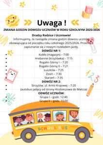 Rozkład jazdy szkolnego busa w roku szkolnym 2025/2026