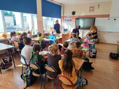 POLICYJNA MASKOTKA ODWIEDZA DZIECI